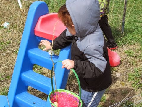 They were so sweet during their Easter egg hunt. One would find an egg and run it over and put it in the others' basket. My heart was mush.